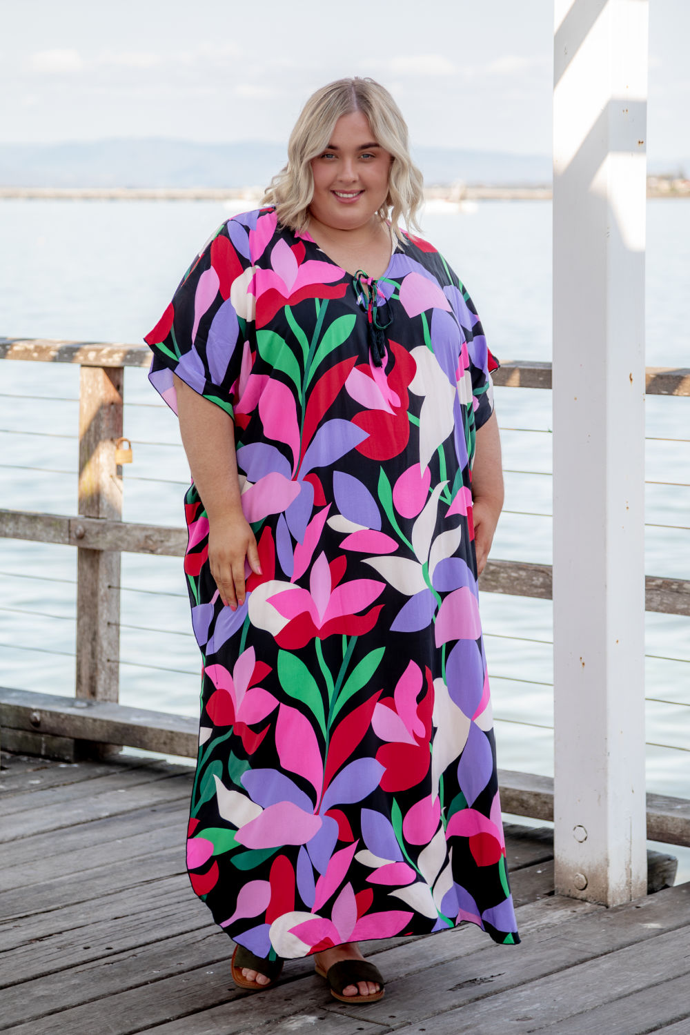 long-summer-kaftan-style-dress-florals-black-red-pink-mauve-plus-size