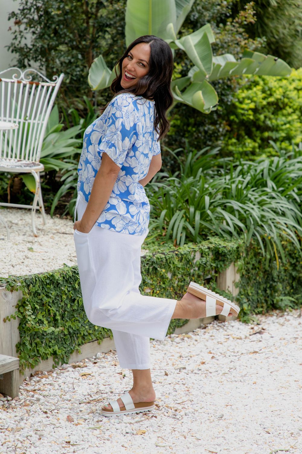 Fresh, coastal, and effortlessly chic — the Arianna over White Set pairs our best-selling Arianna Blouse in tropical blue-and-white hibiscus print with the timeless Classic Cotton Pants in crisp white. Designed for relaxed summer style with a polished finish, this set makes holiday packing or weekend dressing refreshingly simple. Best of all, you’ll save 20% when you buy them together.