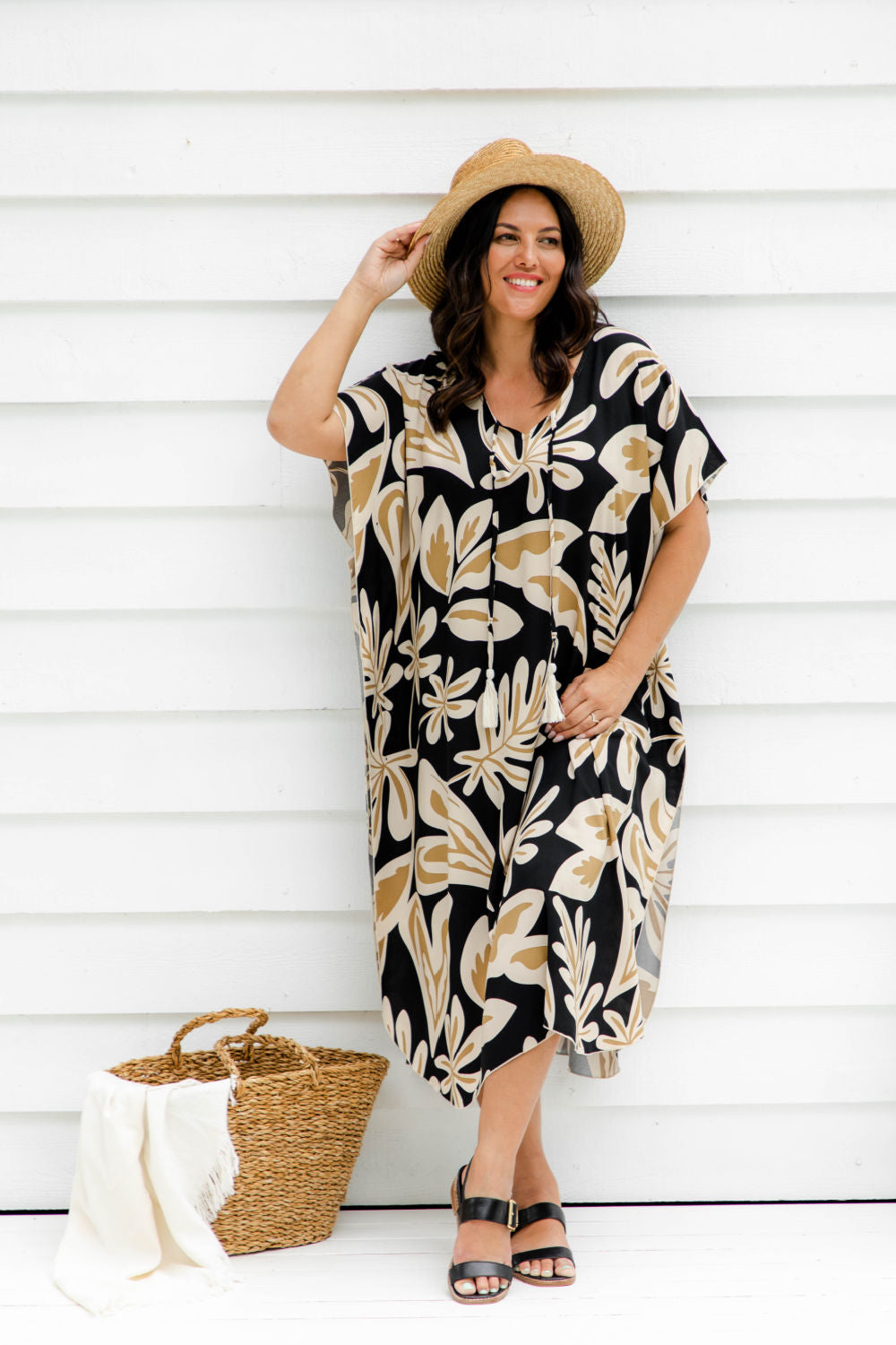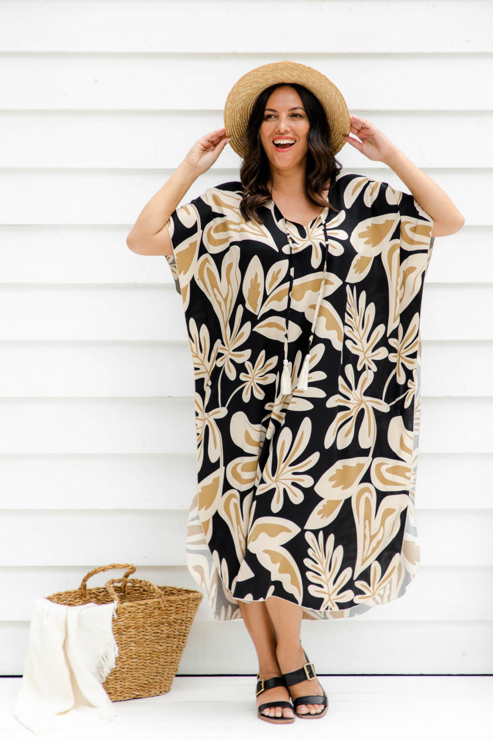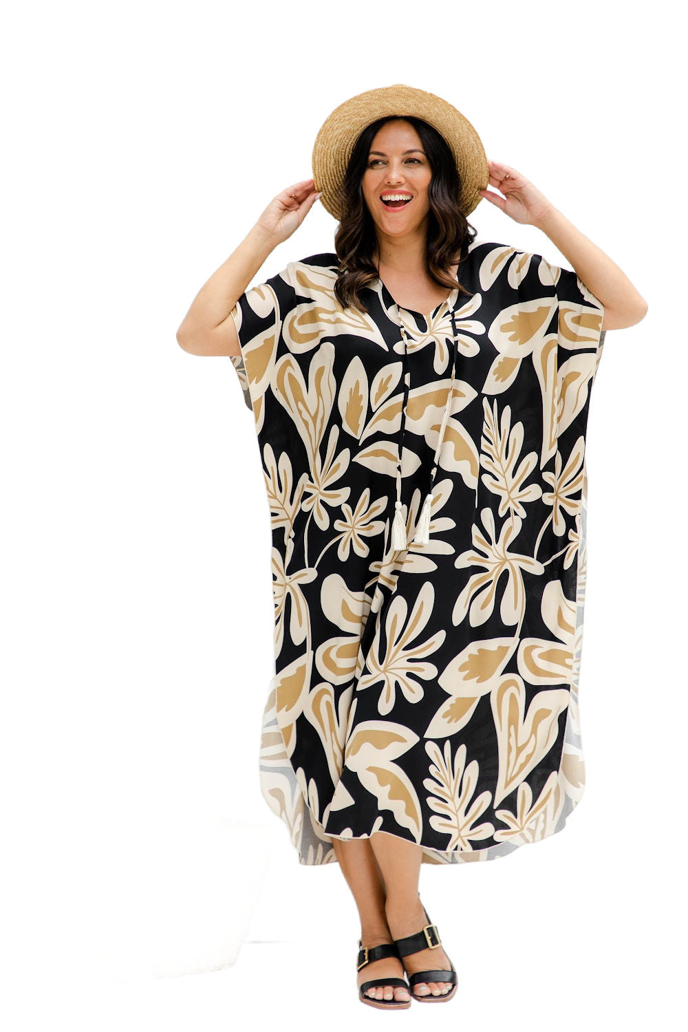 Der mühelos schicke Latte Leaves Kaftan bietet Ihnen Bewegungsfreiheit und zeitlosen Sommerstil.