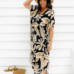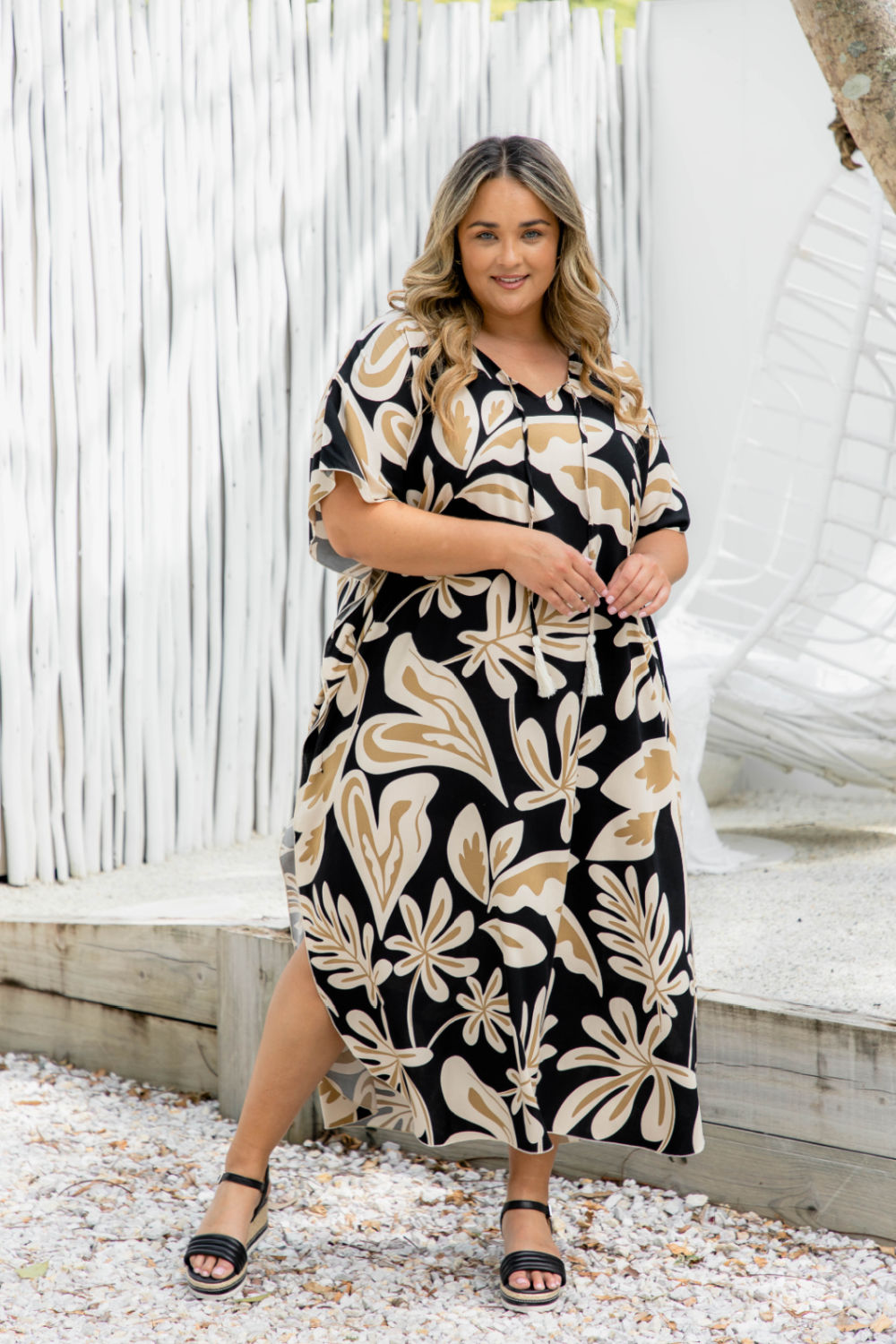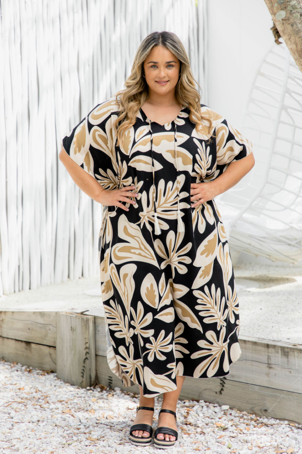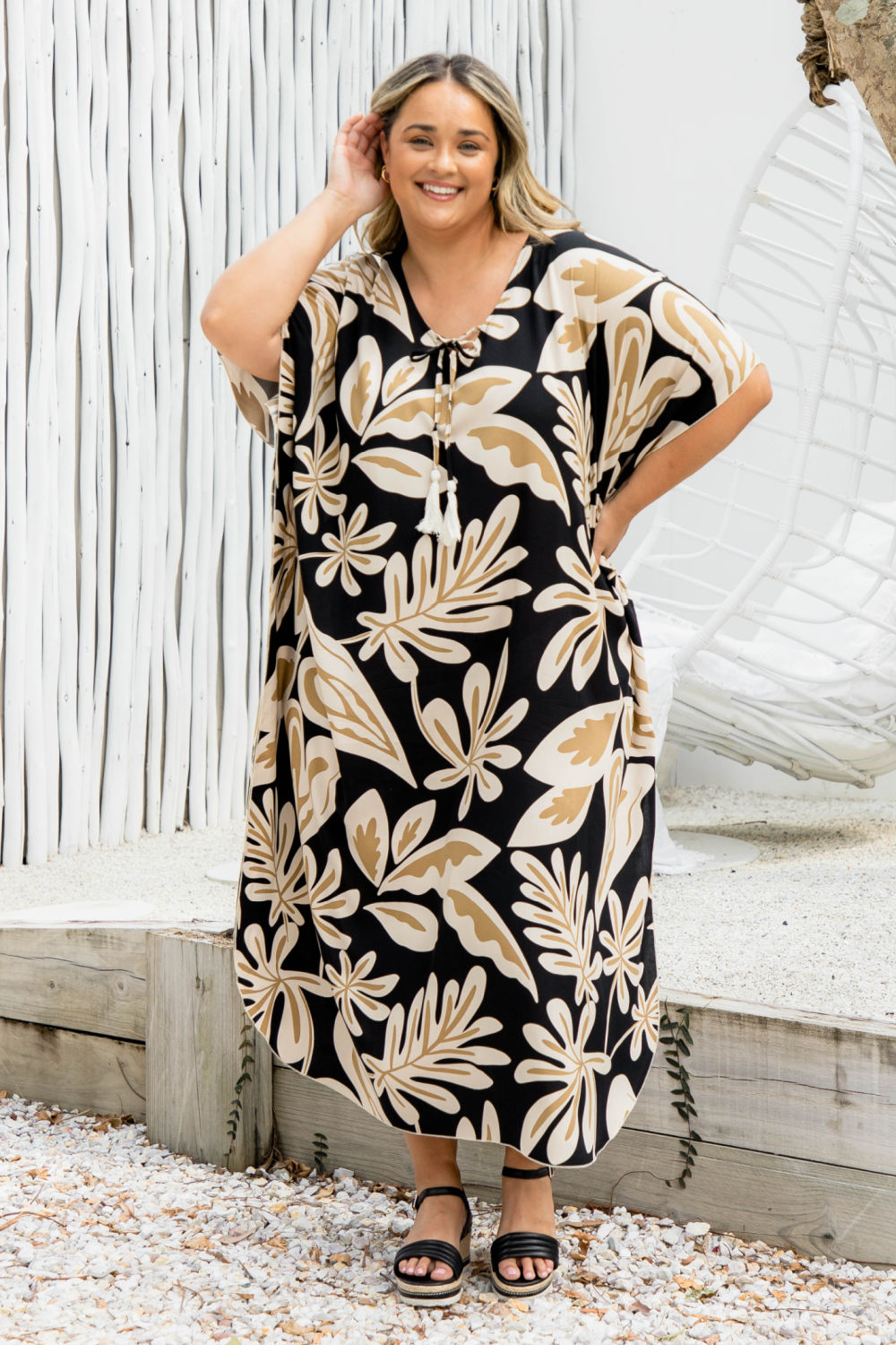 Der mühelos schicke Latte Leaves Kaftan bietet Ihnen Bewegungsfreiheit und zeitlosen Sommerstil.