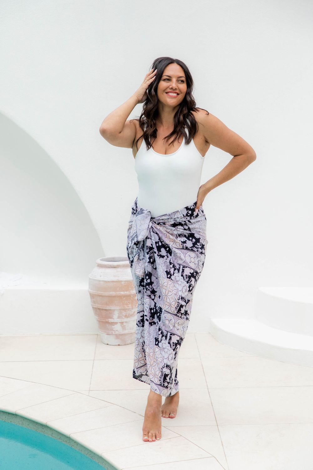 Elevate your summer style with this versatile, exclusive sarong that blends artful design with everyday ease.