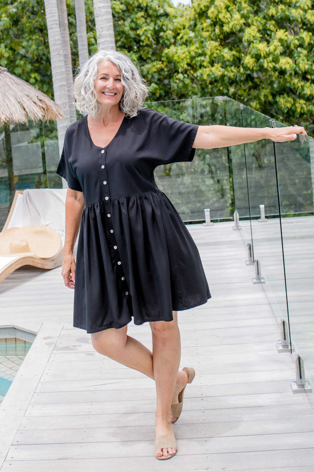 Bei einer Körpergröße von 175 cm ist das Isla Sommerkleid eine supersüße kurze Länge. Es wurde jedoch so entworfen, dass es bei Damen mit einer Körpergröße von ca. 168 cm knapp über dem Knie sitzt.