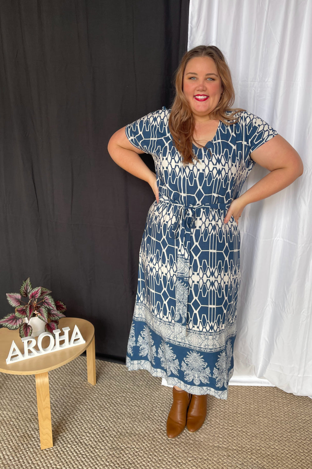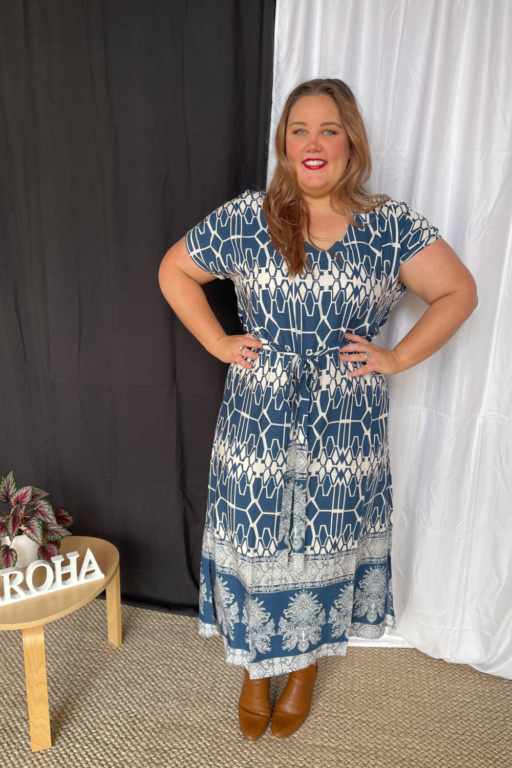 Wenn Sie sich an der Schwelle zu einer Größe befinden oder etwas kurvige Hüften haben, empfehlen wir Ihnen, eine Größe größer zu wählen, damit Sie den frei fließenden Look des Designs beibehalten, da dieser Stil einen ziemlich geraden Schnitt ohne Dehnung im Stoff hat.