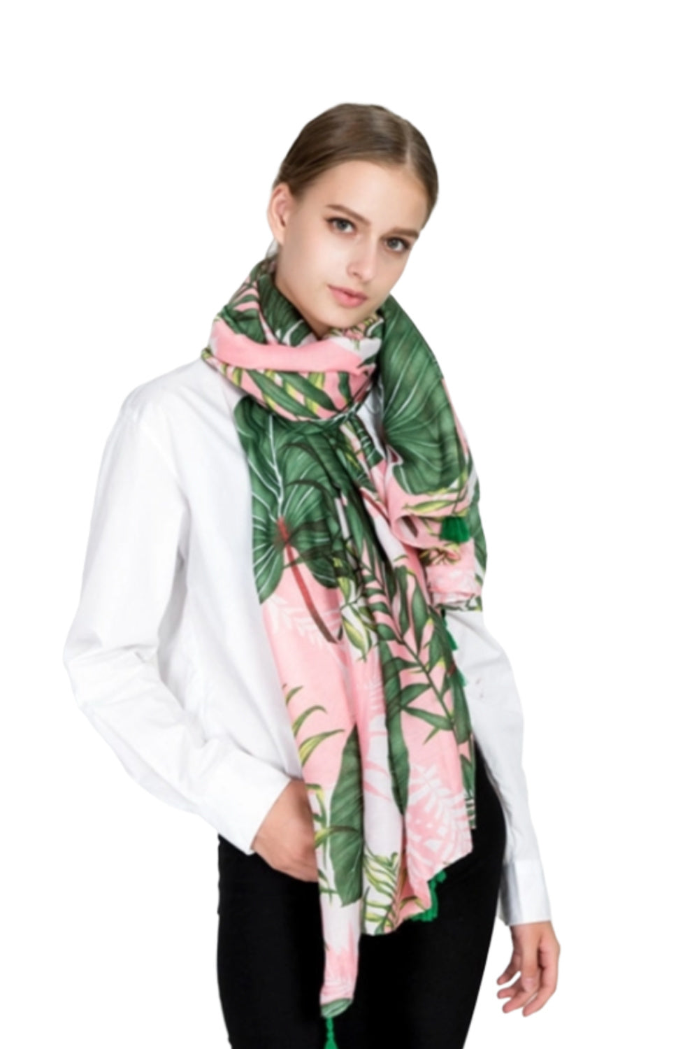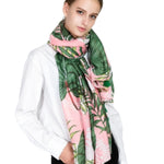 large-womens-scarf-pink-green-palm-leaf-design
